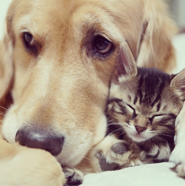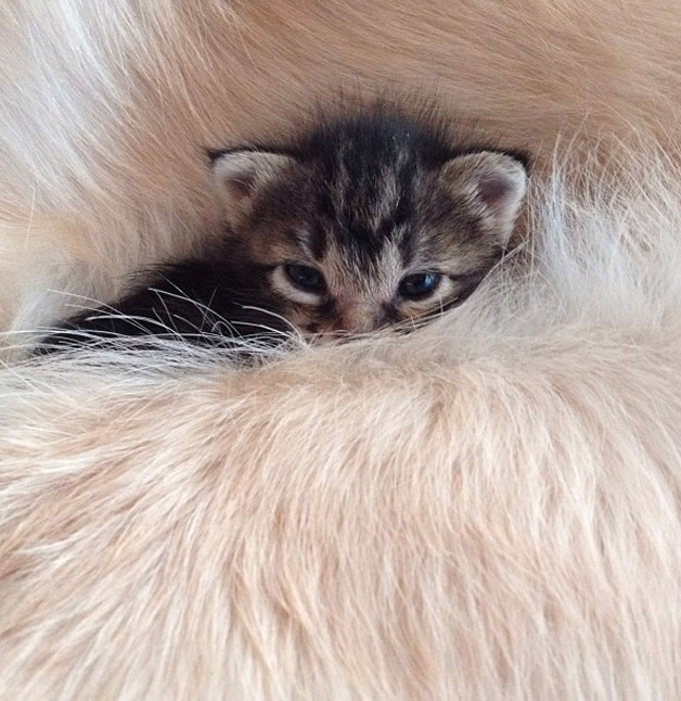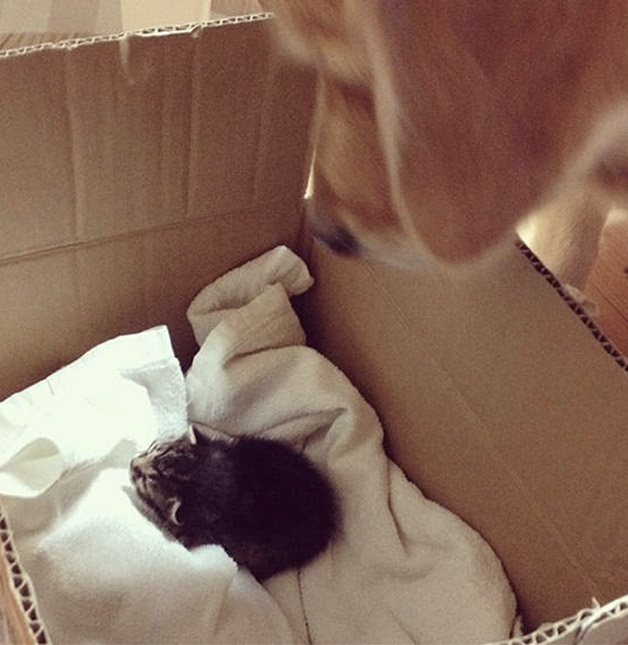 Chegando em casa, teve uma grande surpresa, seu cão Ponzu (um Golden Retriever), recepcionou a pequenina com tanto amor e carinho, criaram uma relação tão intensa que o Ponzu resolveu adotá-la como se fosse sua filha!