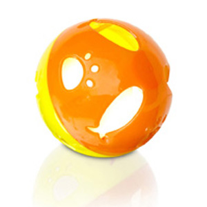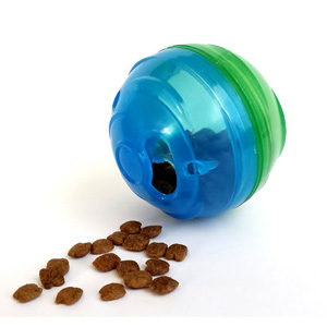 Comedouro-brinquedo em forma de bola com 1 abertura ajustável.
