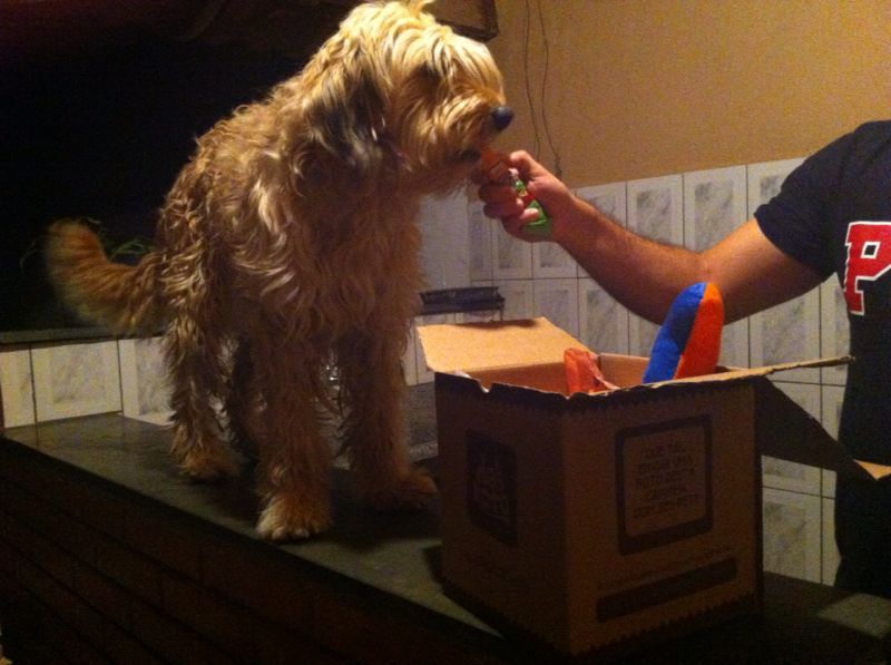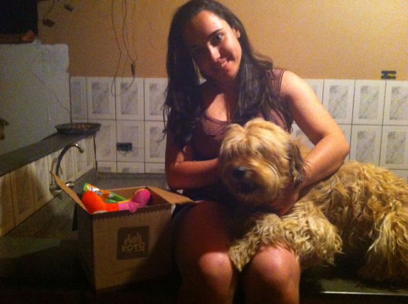A mamãe Camila também nos enviou algumas fotos da Shena com a Maskoto dela! Camila nos contou que a Shena adorou os mimos e está brincando muito com o ossinho de pelúcia e a Pet Ball! Que fofa, né?!